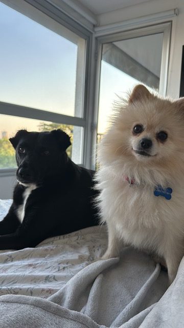 Irgendwann habe ich dann auch noch einen Bruder bekommen – wovon weder Mama noch ich anfangs besonders begeistert waren. Oma hat Mama nämlich einen Pomeranian-Welpen geschenkt. Den Blick von uns beiden könnt ihr euch sicher vorstellen.