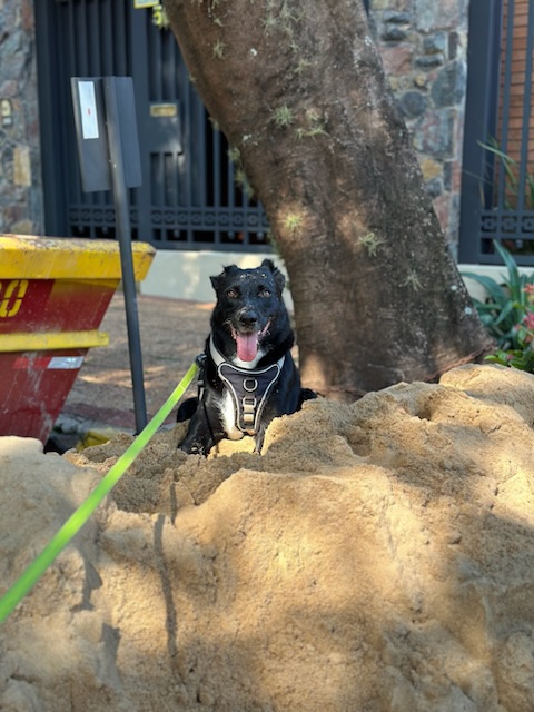 Im Januar 2023 haben wir uns von Mamas Freund getrennt, und wir sind gemeinsam nach Wiesbaden gezogen. Das war richtig cool. Mama war glücklich, weil wir mitten in der Stadt und damit nah an ihrer Arbeit gewohnt haben. Ich war glücklich, weil es in der Nähe Wald und einen großen Hundespielplatz gab. Drei Mal pro Woche waren wir abends dort auf Play-Dates. Dass ich danach jedes Mal duschen musste, hatte mir vorher allerdings niemand gesagt. Aber gut – ist ja nicht meine Schuld, dass es dort den Rhein und einen riesigen Sandberg zum verbuddeln gibt.