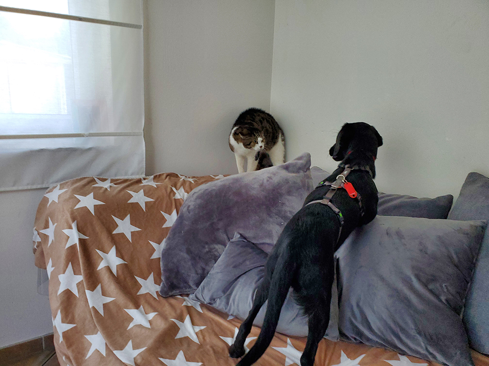 Ist schon echt blöd wenn ein Hund extrem empfindlich auf Knallgeräusche reagiert, so wie unser Finley. Am Freitag meinte so ein Depp spät Abends ein Feuerwerk zünden zu müssen. Großer Spaß, es dauerte Stunden bis sich Finley beruhigt hatte. Am Samstag Nacht dann das Gewitter das zwar eigentlich gar nicht so schlimm war aber Finley hat schon Stunden vorher gemerkt dass da was im Busch ist und hat sich dann 5 Stunden non stop bis Morgens um 03.00 lautstark aufgeregt. Also kämpfe ich mit einem leichten Schlafdefizit…