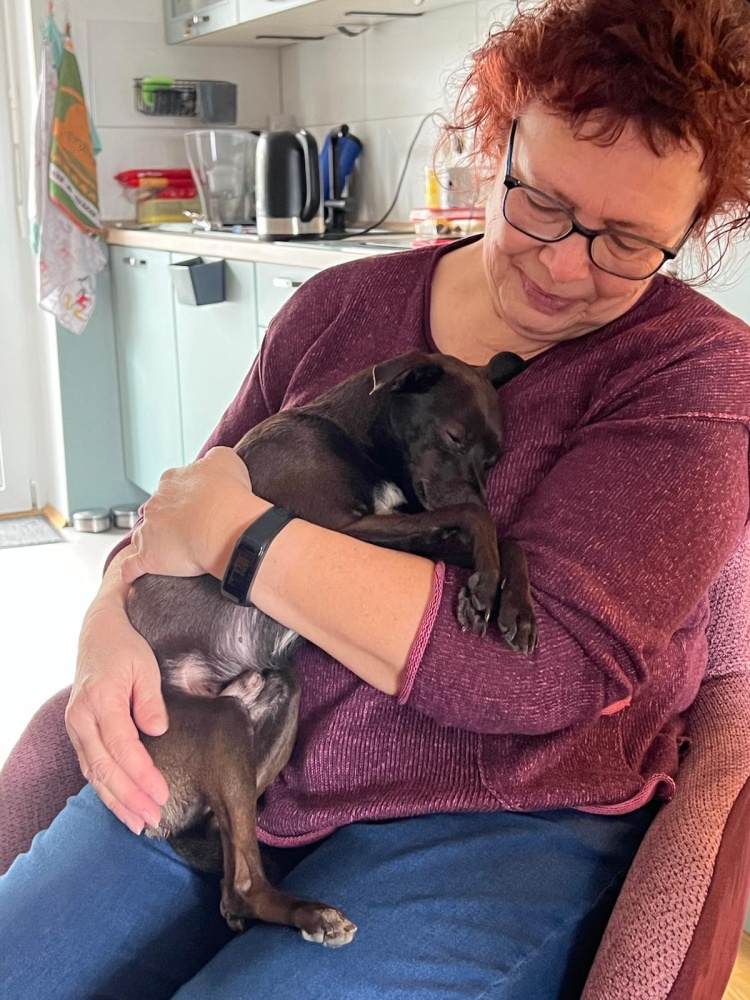 Zwerg Stanley hat all das nicht berührt, er hatte das riesen Glück gestern direkt von seiner Pflegestelle in sein neues Zuhause ziehen zu können. Er fühlt sich offensichtlich sehr wohl und sicher in den Armen vom neuen Frauchen. Genau da gehörst du hin kleiner Schatz. Alle deine Wünsche sind in Erfüllung gegangen, genauso gehört sich das.