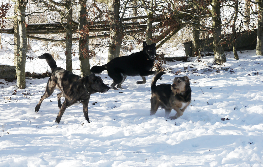 Heute war ja Rezas großer Tag. Nach zweistündiger Fahrt in die tiefste Eifel, waren sie endlich am Ziel. Reza wurde von den vier neuen Kumpels begeistert begrüsst und schon gings ab mit wildem, ausgelassenem und fröhlichem Spiel. Reza war voll in ihrem Element und hörte gar nicht mehr auf zu strahlen.