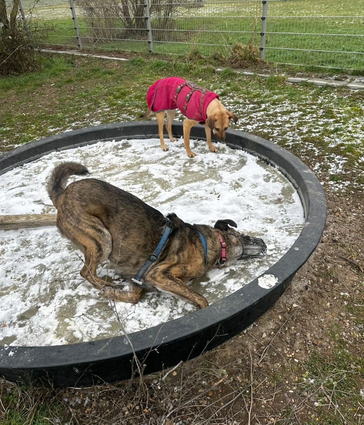 Einige unserer Hunde wie Zina und Miguel warten schon ganz ungeduldig darauf dass die Badesaison wieder eröffnet wird 😉