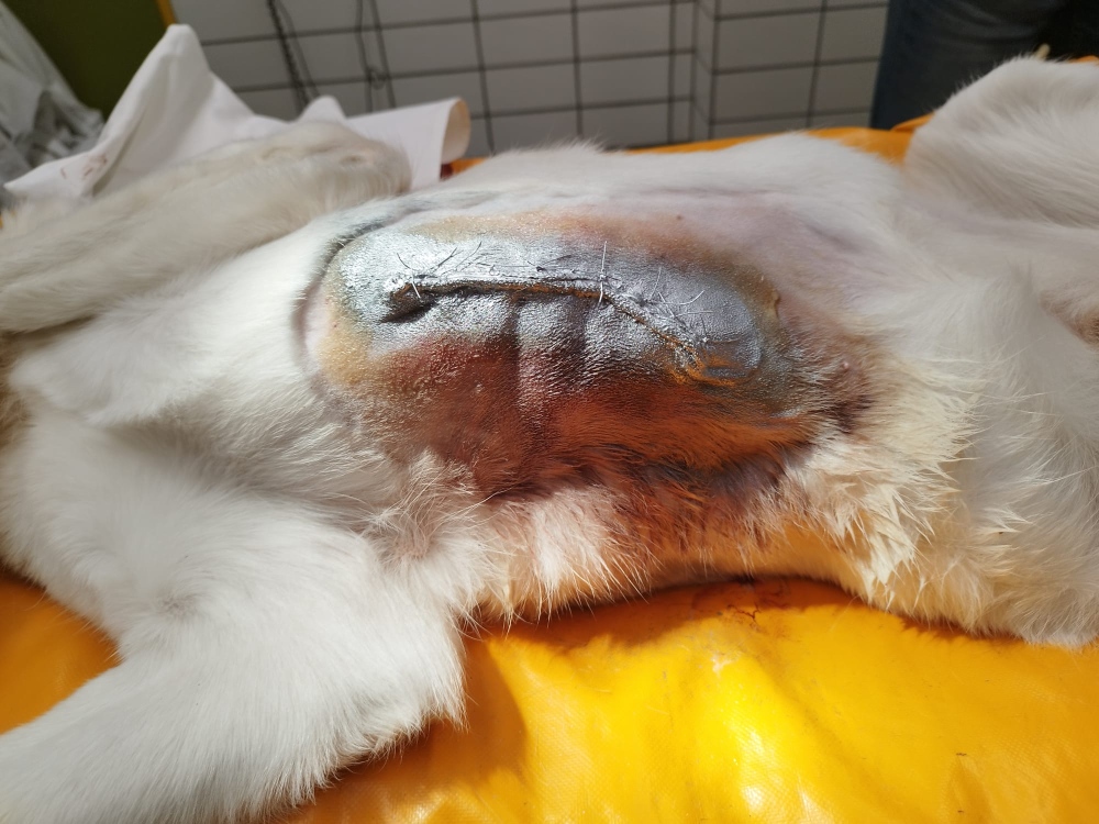 Heute musste Hundeopi Rosario gennant Ari unters Messer. Innerhalb weniger Wochen hatte sich ein schnell wachsender Tumor entwickelt, der entfernt werden musste. Wir haben ihn einschicken lassen und warten auf das Ergebnis des Pathologen, um die weitere Behandlung darauf abstimmen zu können. Ari ist inzwischen, besonders seit seinem Vestibularsyndrom vor ettlichen Monaten, recht tüdelig geworden. So tut er sich noch schwerer als vorher schon mit neuen Dingen und Veränderungen. Wir haben ihn im Bade- und Behandlungshaus in Ruhe seine Narkose ausschlafen lassen.