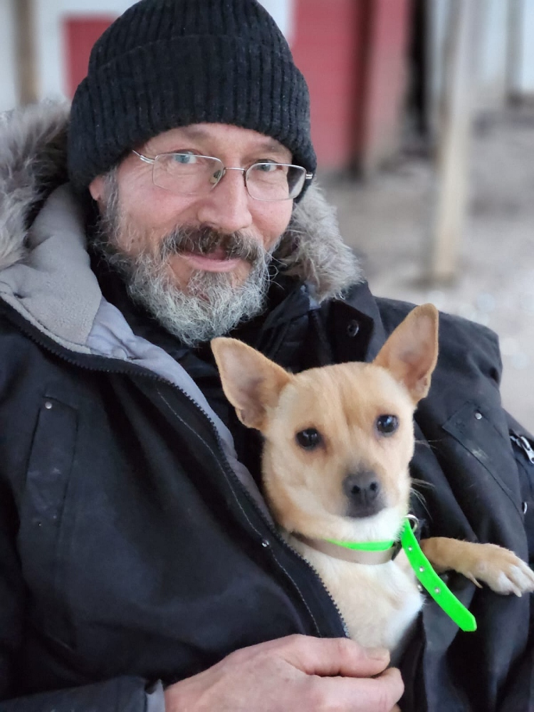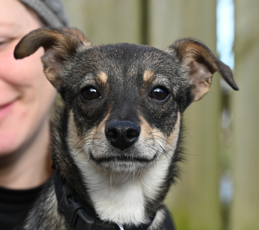 Dieses niedliche Knopfauge ist die 8 monatige Wiesel. Sie wurde als Welpe ausgesetzt. Für so kleine Hunde wie Mani und Wiesel ist es schwierig bei der Kälte draußen leben zu müssen und deswegen haben wir ihnen ein warmes Plätzchen angeboten. Wiesel ist ein Schatz, sanft und verspielt mit anderen Hunden und hofft bald ein Couchplätzchen zu ergattern.