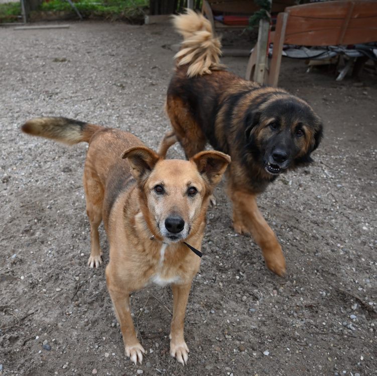 Ich da links von Rasmus bin der Hardy, unglaubliche 10 Jahre habe ich dort in dem bulgarischen Tierheim zugebracht und fast mein ganzes Leben dort verschwendet. Ich muss super Gene haben, denn ich bin total fit, laufe federnd, hab tolle Zähne, prima Hüften und bin ebenfalls ein richtig netter Kerl. Freundlich und verschmust und mehr als bereit jetzt nochmal voll durch zu starten und mein Leben zu genießen.