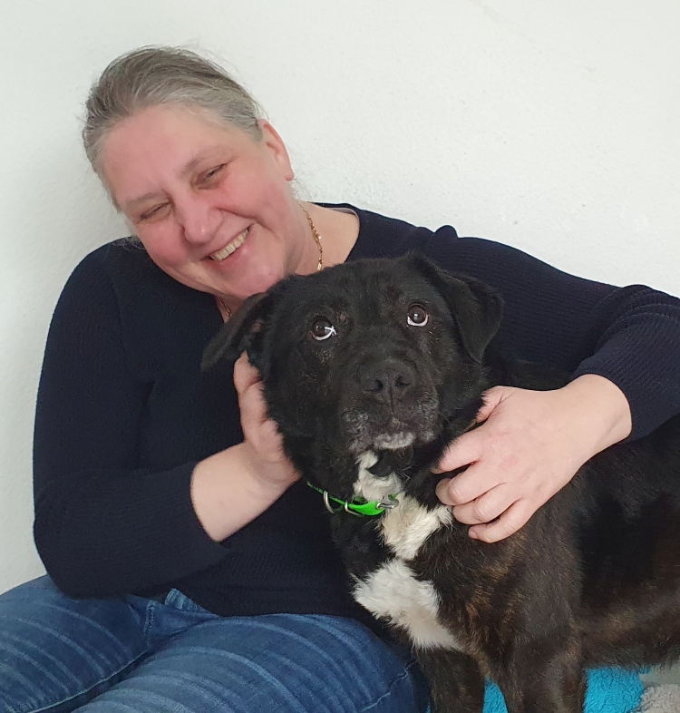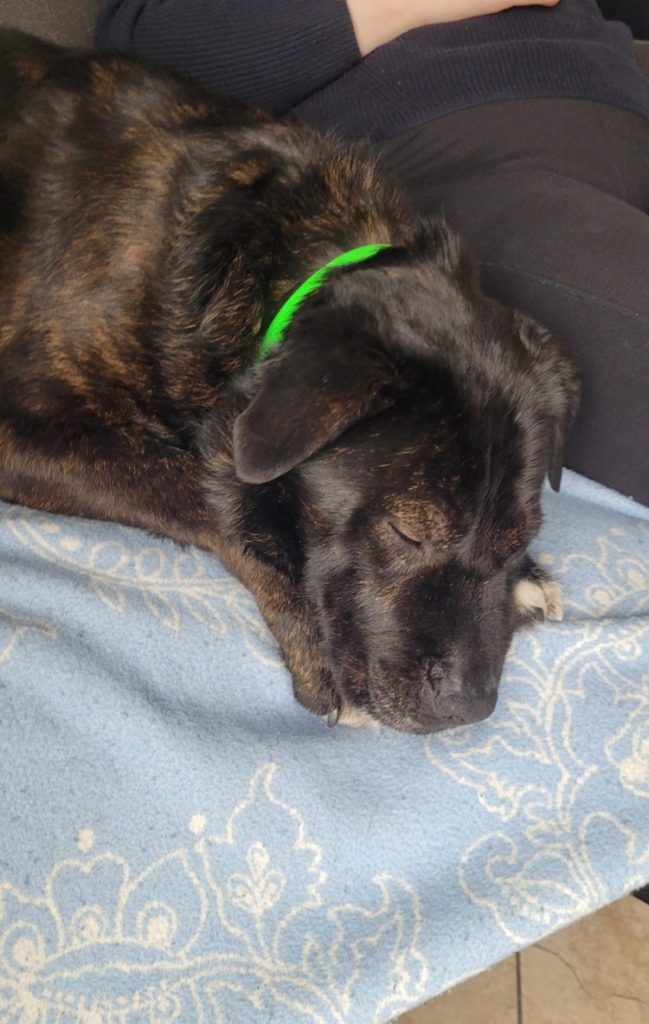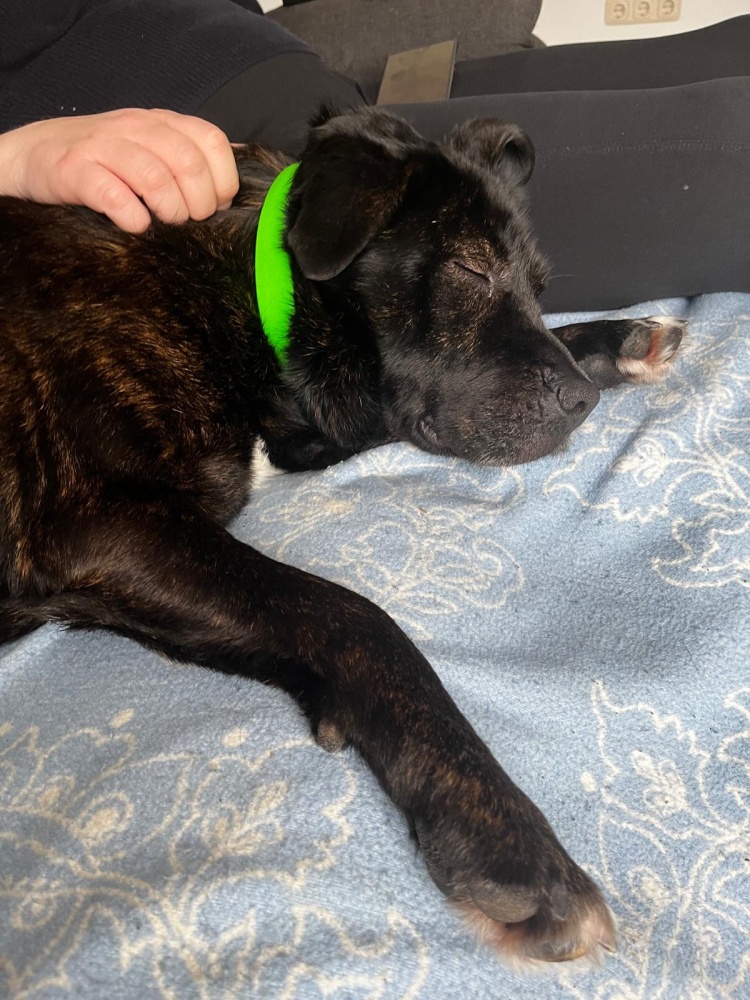 Da staunt ihr was? Ich, Moppelchen Muffin hab ein Zuhause gefunden. Ich die mit meinen 7 Welpen 2022 in das fürchterliche Kettentierheim kam, zusehen musste wie alle meine Welpen starben und dann vier Jahre an der Kette aushalten musste und nun so ein Happy End. Da kann man schon mal große Augen machen. Anscheinend gibt es doch noch so was wie Gerechtigkeit im Leben. Leider nicht für alle aber da es in dem Fall mich getroffen hat bin ich jetzt einfach nur glücklich und hab gleich einen viel entspannteren Gesichtsausdruck. Endlich!!!