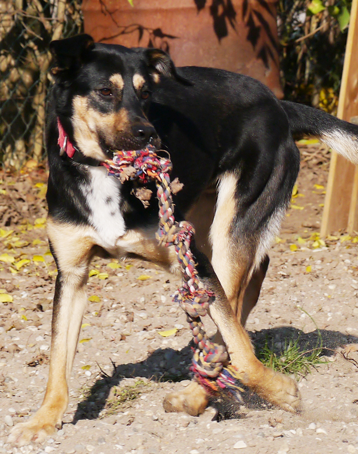 Flitzpiepe Litti wurde heute kastriert, ist aber schon wieder fit und zu Späßen aufgelegt.