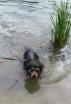 Rons Gehege am unteren Ende des Hundeheims stand zum Teil schon richtig hoch unter Wasser. Aus dem Boden quoll das Wasser in einem unaufhörlichem Strom. Roxy geht ja gerne schwimmen, aber Ron hasst es nasse Pfoten zu bekommen. Es war nur noch eine Frage der Zeit, dass es auch die Hundehäuser überflutet hätte.