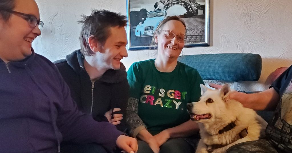 Auch unsere liebe Holly bekam ein Geschenk, nichts zum futtern, nee, was viel besseres nämlich ein neues Zuhause. Dem freundlichen Mädel schien Haus und das ganze Drumherum bekannt zu sein, so unaufgeregt hat sie alles erkundet. Ja und manchmal führt der kürzeste Weg halt auch über den Couchtisch 😉 Couch statt Kette, das ist doch eindeutig die beste Option. Alles Liebe für dich und deine neue Familie Holly.