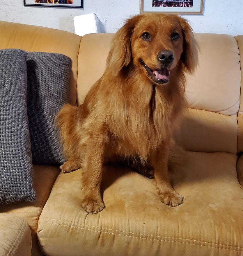 Du liegst auf der Couch. Der Zeckenmagnet legt sich neben dich, mit Kopf auf den Beinen und fängt an zu schnarchen.