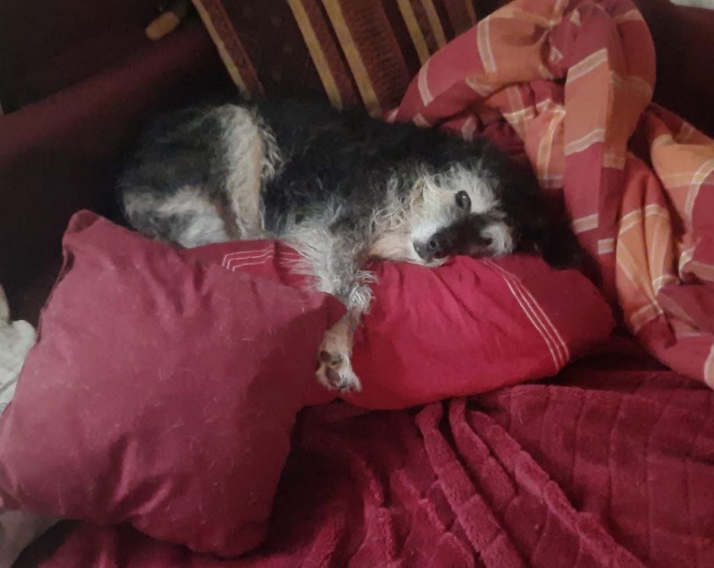 Ja, genau das war unsere Pina für uns und wir werden sie so sehr vermissen. Am 22.05.2021 kam sie zu uns nachdem sie über sechs Jahre in dem bulgarischen Tierheim an der Kette gehangen hatte. Es war Zeit dass das alte Mädel mit ihrem wunderschönen weißen und weisen Gesicht es nochmal richtig schön hat.  Pini hat sich nahtlos in der Gandenbrotgruppe eingefügt und liebte es im Haus mit seinen vielen gemütlichen Hundebetten sein zu können. Sie wusste genau wo Morgens früh der beste Sonnenplatz war und liebte es mein Bett auf den Kopf zu stellen um sich darin ein Nest zu bauen.