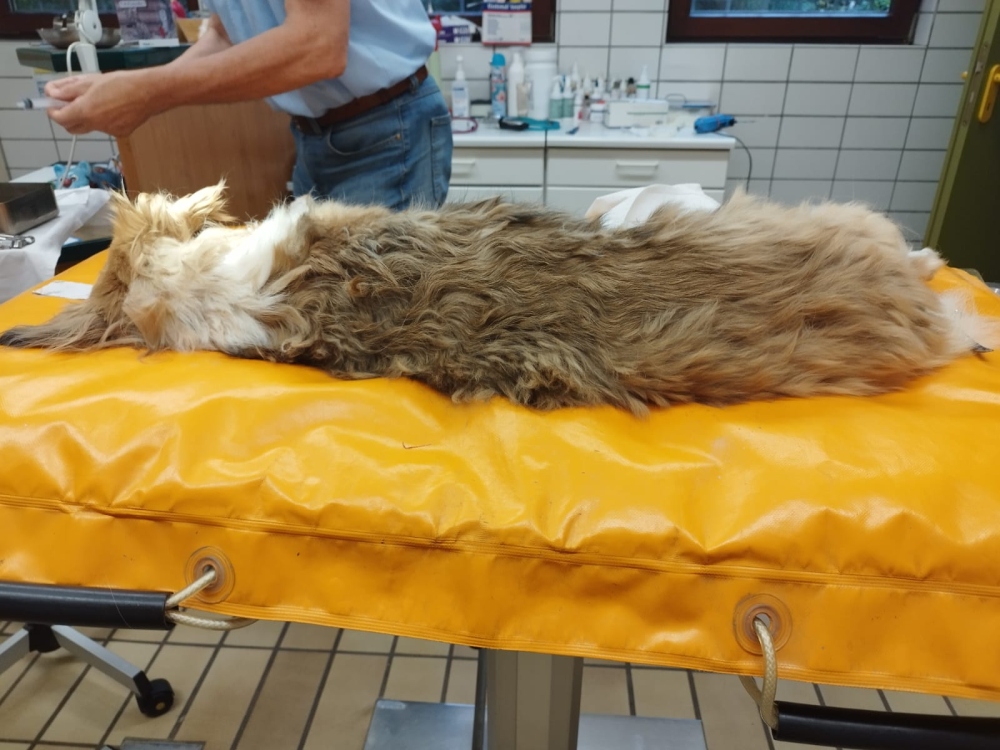 Oft sind es bei uns leider die Hunde mit richtig dickem, langen Fell die am unkooperativsten sind mit der Fellpflege. Eine davon ist unsere Magic. Wie schon Katinka vor einigen Wochen kam heute Magic in Narkose um ihrer Wolle ausgiebig zu Leibe rücken zu können.  Sie hatte schon zweimal eine Scheidenentzündung und schon um sie besser behandeln und es sauber halten zu können musste alles radikal abrasiert werden. Die Zähne waren tippi toppi so dass da nix zu machen war. Morgen Früh hat Magic ihren Narkoserausch ausgeschlafen und alles ist wieder gut.