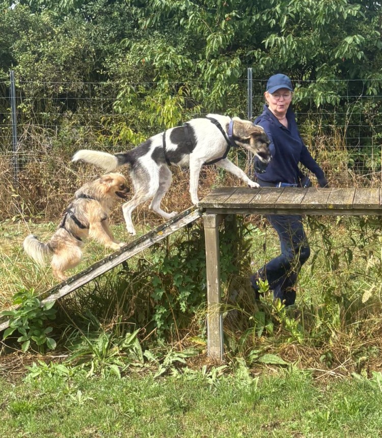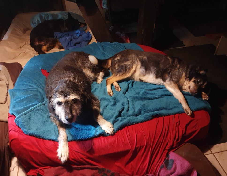 Zwischen den Regengüssen hatten Grace und Joker ihren Spaß auf der großen Wiese. Später als der Regen zu heftig wurde war dann nur noch kuscheln angesagt was aber auch seeehr gerne von den Hunden angenommen wurde. Wir können nicht verstehen dass sich noch niemand für Joker interessiert hat. So ein toller kleiner Kerl, das rundum Sorglospaket was eigentlich alle immer suchen dazu in einer sehr handlichen Größe. Mhh, na werden schon noch die Richtigen kommen.