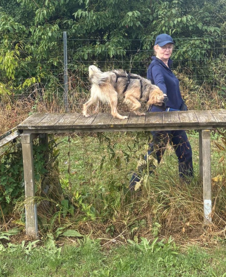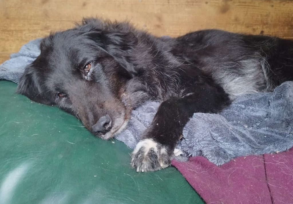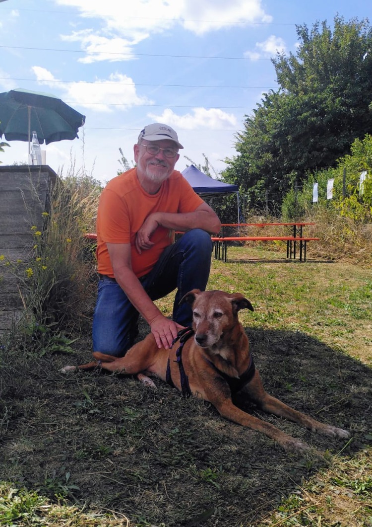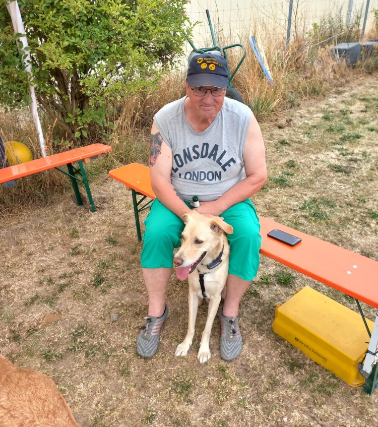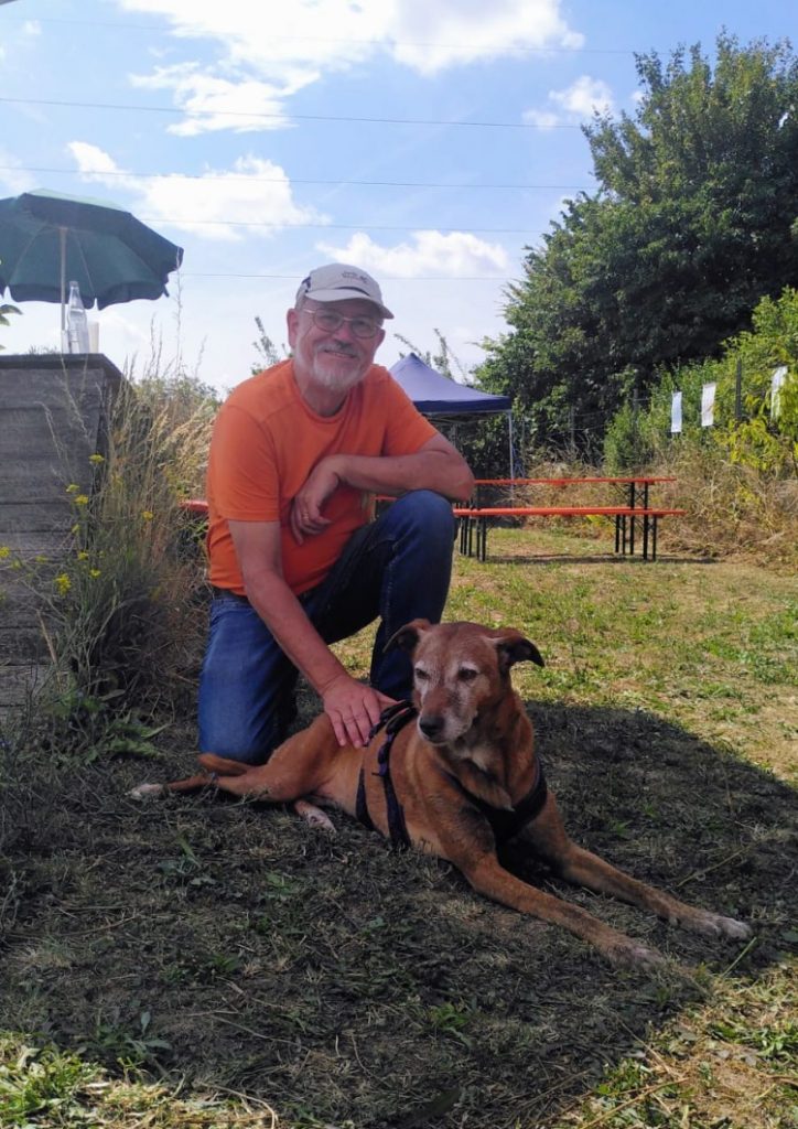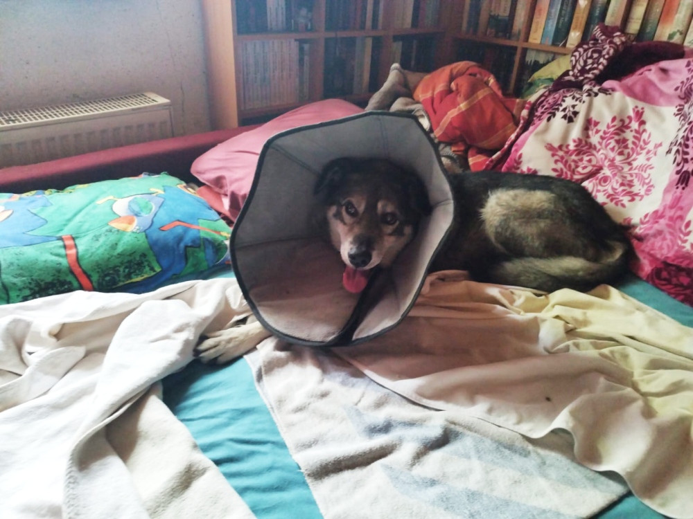 Und dann haben wir Scooby mit ins Haus genommen. Er tut sich nicht so leicht mit Veränderungen und braucht seine Zeit sich auf Neues einzustellen. Der Bub hatte leider schon immer schlechte Karten und es dauerte lange bis er damals vermittelt war. Wir haben es nicht verstanden warum das so war. Letztes Jahr kam Scooby nach fünf Jahren wegen familiärer und Krankheitsbedingter Probleme seiner Menschen zu uns zurück und nun noch der Tumor der ihm aus dem Bein geschnitten wurde. Mit 10 Jahren ist Scooby noch richtig fit aber das macht es alles nicht einfacher für ihn nochmal ein Zuhause zu finden. Was wirklich schade ist, denn er ist ein wirklich feiner Kerl. Damit die Op Wunde am Bein abheilt muss er etwas tragen das ihn davon abhält dauernd daran herum zu lecken. Das findet Scooby gar nicht gut, es stresst und verunsichert ihn. Aber so langsam wird es mit seiner Toleranz besser.