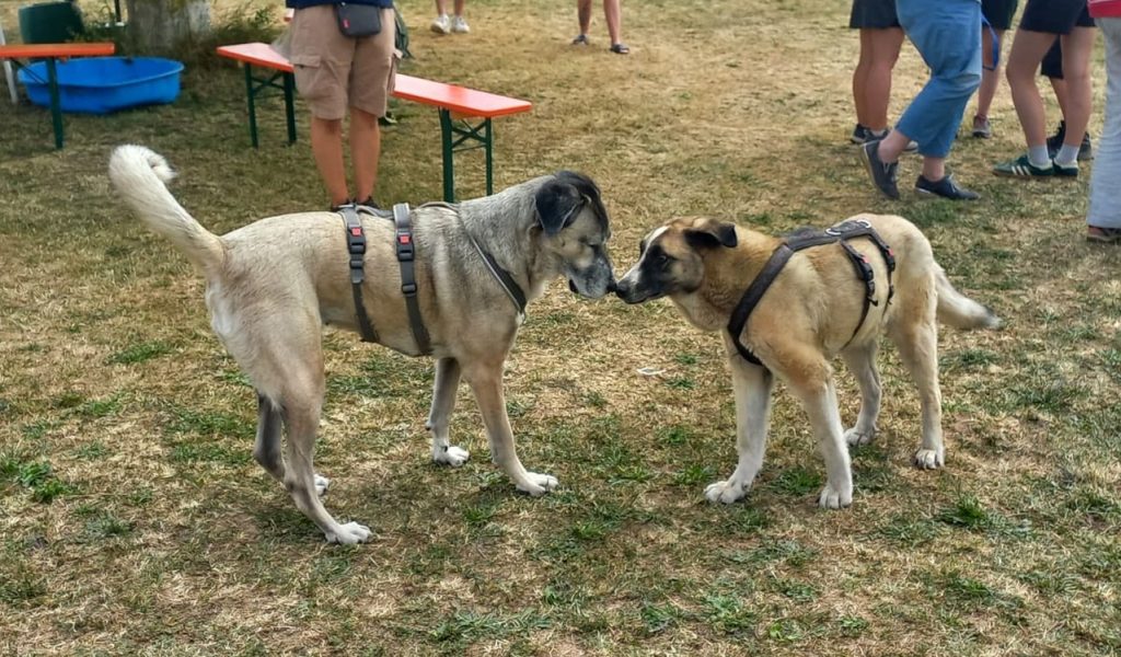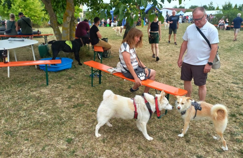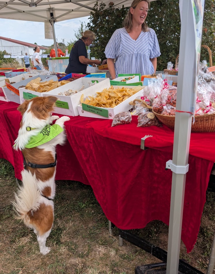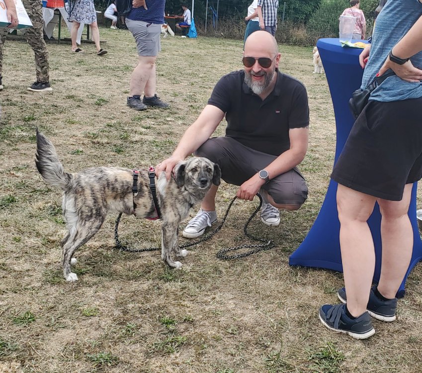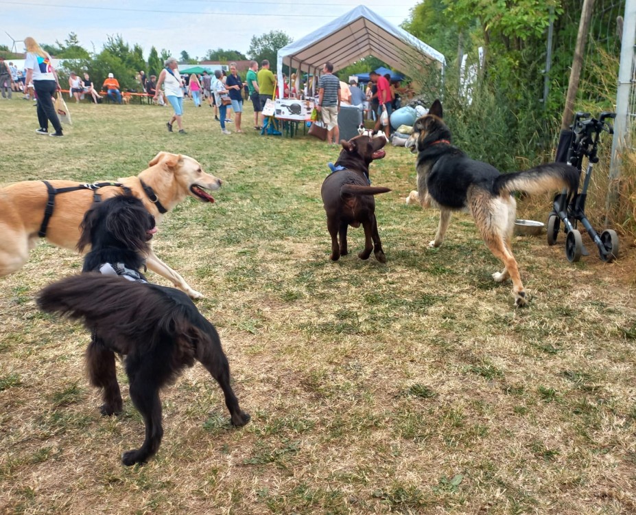 Wir haben eine Vielzahl unserer Hunde auf dem Fest vorstellen können und sie haben es alle richtig super gemacht. So viele fremde Menschen, noch viel mehr unbekannte Hunde aber unsere Nasen waren total gut drauf und haben viele neue Freunde gewonnen bei den Zwei- wie Vierbeinern. Es wäre schön, wenn sich für den ein oder anderen daraus vielleicht ein richtiges Happy End mit neuem Zuhause ergeben würde. Unser großer Rasmus, total abgeklärt und entspannt, Freia die stundenlang gespielt und getobt hat, genauso wie Amos, Tobi, Emmi, Rieke und kein-Ohr-Hund Beau, der mit seinem Charme und seiner unbefangenen Freude die Menschen begeistert hat. Lisha die sich unheimlich gefreut hat ihre bereits vermittelte Schwester Jackie wieder zu sehen, unsere Zwergentruppe mit Gio, Rübe, Pipin und Joker mit seiner Freundin Grace und noch so einige mehr. Es war eine tolle Erfahrung für unsere Hunde und wir haben wieder einiges über unsere Schützlinge gelernt. Win-win für alle.