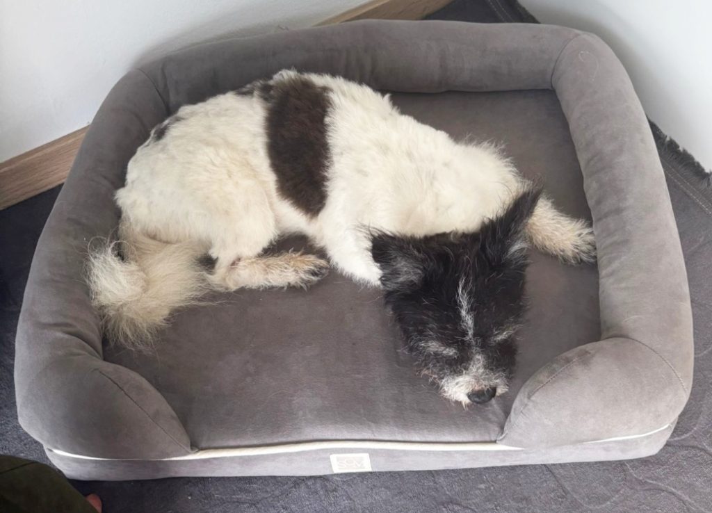 Die Zahnfee macht derzeit Überstunden, heute für den kleinen Bilbo. Wir mussten mit der Zahnsanierung warten bis er richtig auf die Herzmedikamente eingestellt war. Sechs Beisserchen mussten gezogen werden, jetzt ist wieder alles fein und blitzeblank. Bilbo fühlt sich unglaublich wohl in seinem neuen Zuhause was sich auch schon positiv auf sein Herz ausgewirkt hat. Er liebt es Bürohund zu sein was besonders schön ist da Frauchen von Zuhause aus arbeitet. Wir sind so dankbar dass der Bub das alles erleben darf, die Hoffnungen dass er solches Glück haben könnte waren alles andere als groß. Aber man soll halt nie nie sagen….