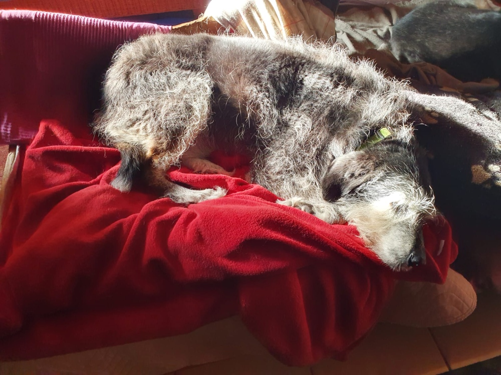 Grandpa ist sehr unruhig, mag nichts futtern so dass ich auch die Medikamente nicht in ihn reinbekomme, nur trinken. Ohne die Medikamente bekommt er sehr schlecht Luft, ist alles nicht so einfach im Moment. Mal schauen wie es weitergeht. Dafür hat Nala wieder einen guten Tag gehabt. Unsere Oldies halten uns echt auf Trab.