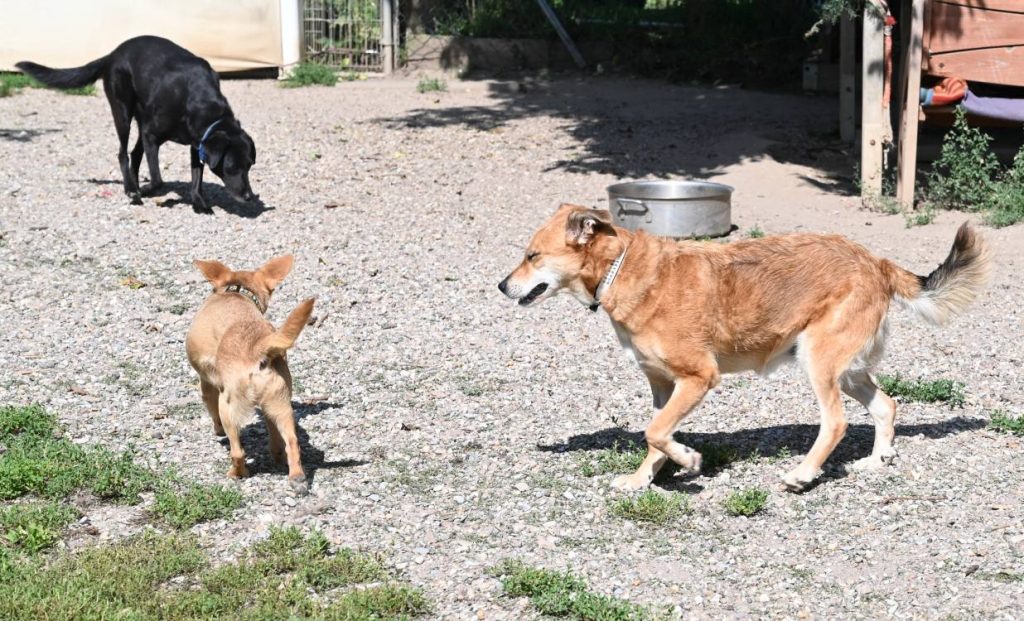 Zusätzlich zu der Hitze die auch viele Hunde stresst, die einen mehr, die anderen weniger fing heute auch noch das fürchterliche Knallen durch die Gasbetriebenen Starenabwehr Schussanlagen an. Unsere kleine Ava war völlig aufgelöst, nur noch am zittern und suchte viel Nähe und Sicherheit bei uns. Das werden wieder harte acht Wochen für unsere Hunde….