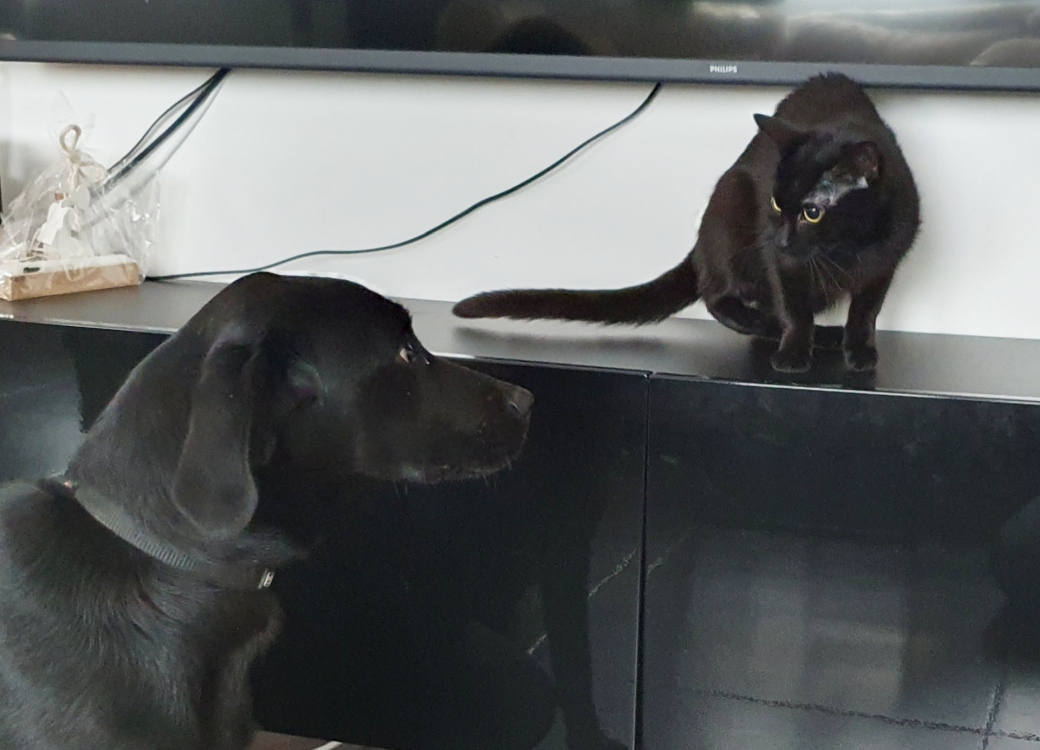 Onyx darf mit Frauchen auf die Arbeit kommen. Nee, kein langweiliger Bürojob wo Hund nur brav in der Ecke liegen muss und in der Mittagspause mal vor die Tür kommt. Onyx geht mit auf einen Reiterhof wo er jede Menge Kumpels hat und die Bande in einem großen abgezäunten Bereich ihren Spaß haben darf. Zuhause warten dann drei Katzenkumpels auf ihn. Onyx wird ein gutes Leben haben, geprägt von Liebe, Freiheit und Abenteuer. So solls sein, viel Spaß du Wunderhund.