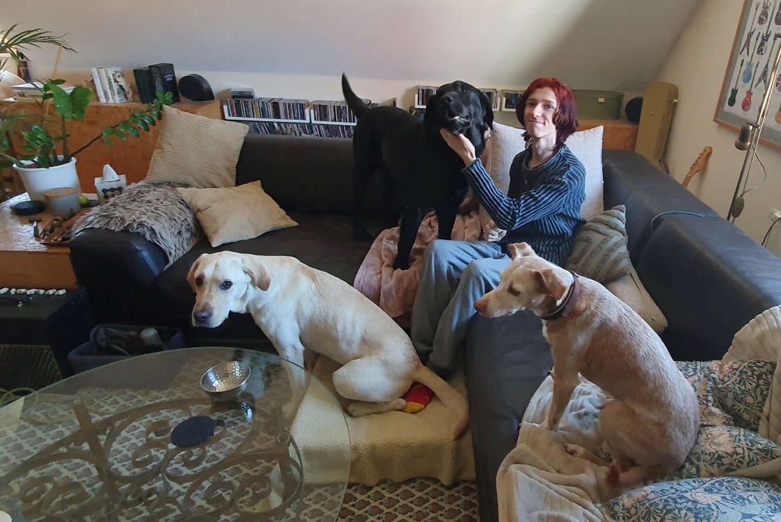 Das ist doch mal ein gaaanz entspannter Einstand im neuen Zuhause für unseren Scooter. Der feine Bub war total gelassen , freundlich und liebevoll wie er eben ist. Scooter lebt jetzt mit einem Hundekumpel zusammen und hat zusätzlich immer einige Gastkumpels, da Frauchen Hundebetreuung macht.