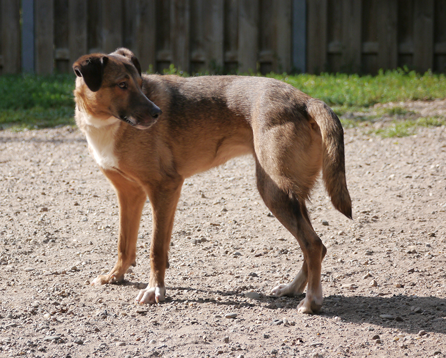 Ich mag Menschen auch wenn ich am Anfang ein bisschen zurückhaltend bin. Mit anderen Hunden brauche ich immer erstmal ein, zwei Tage um warm zu werden, aber dann habe ich auch Spaß am gemeinsamen Spiel. In meinem neuen Zuhause wäre ich mit einem Leben als Einzelhund zufrieden, denn ich mags eher ruhig.