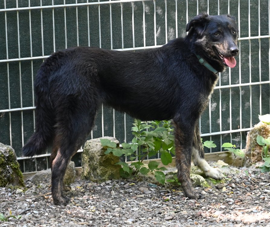 Toby liebt uns Menschen manchmal etwas zu sehr, sodass man ihn etwas in seinem Überschwang bremsen muss, aber mit Geduld und Ruhe lernt er das schnell.