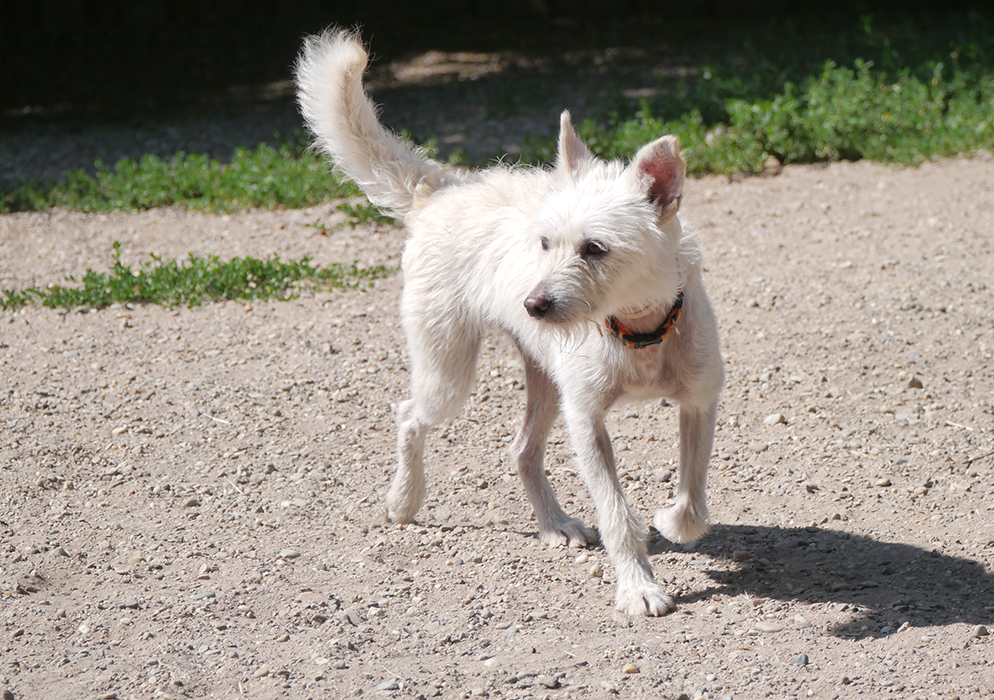 Ich bin der lustige Speedy, der nach einer harten Zeit nun endlich hofft den Jackpot in Form eines neuen, richtigen Zuhauses zu knacken. In dem bulgarischen Tierheim aus dem ich komme, hing ich an der Kette. Das war der Albtraum für mich und ich hab alles versucht um das Ding loszuwerden. Mein Halsband war deswegen sehr eng gestellt und hat mir die ganzen Haare an der Kehle weggescheuert. Aber das wird wieder, rapp zapp ist mir da wieder Pelzchen gewachsen.